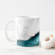 Caneca De Café Glitor de Prata de Agato Azul-Teal Branco