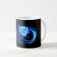Luminous infinity symbol with glowing, beautiful, lushly blooming rose made of blue flames on black background.