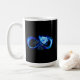 Luminous infinity symbol with glowing, beautiful, lushly blooming rose made of blue flames on black background.