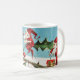Funny vintage Christmas illustration of little white bearded gnomes dressed like Santa, painting holly berries in the snow. Published by L. Prang & Co.