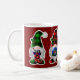 Gnomos de Natal. Apresentando o trabalho de arte original dos Gnomos com Pequenos Caminhões Vermelhos do Rick Ellinger. Para o colecionador de gnomos na sua lista de presentes, ou simplesmente para você. Quatro gnomos vestidos em búfalos cheios com a decoração de Natal de Little Red Truck: estocagem de Natal, ornamento de árvores de Natal, globo de neve e coroa de Natal.