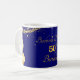 A stunning milestone 50th Birthday celebration mug. The vibrant navy blue and gold party design gives off a rich, luxurious atmosphere and is suitable for all genders.