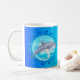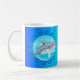 O golfinho que salta com um símbolo maori do sol com um oceano e um veleiro azuis atrás dele.