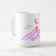 Brighten your mornings with this stunning mug featuring a vibrant gradient mountain design in pink and purple, complemented by a bold red crescent moon. Perfect for coffee, tea, or any beverage, it adds a touch of creativity to your drinkware. Great for home, office, or as a unique gift for design enthusiasts.