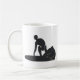 Caneca de café do design do surfista. Caracterizando a arte gráfica da estátua memorável de Tim Kelly na praia de Hermosa, Califórnia. Design gráfico do surfista do estilo do vintage que você encontrará nenhum onde mais!