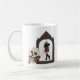 Adicione sua própria foto para criar uma caneca personalizada com uma estética acadêmica escura. Sua foto é dentro ilustração de um quadro antigo e é destacada por uma ilustração de um crânio em alguns livros antigos ao lado de uma vela. O design aparece em ambos os lados da caneca.