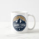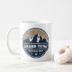Comece seu dia com a beleza do Grande Teton! Esta caneca apresenta um design de emblema redondo estilo vintage, perfeito para amantes de parques nacionais e candidatos a aventuras.