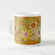Caneca De Café Grande 1960, 1970 Retro Floral Verde e Laranja
