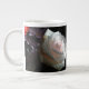 Esta foto foi tirada com uma câmera Nikon. A luz do exterior estava batendo nas pétalas exatamente direito. Roxo e flores vermelhas rodeiam a rosa. Um pouco de verde pode ser visto na foto. Estas canecas estão disponíveis com este design e "Parabéns".