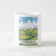 Algodão para uma pausa. Belo estilo vintage poster de viagens de arte impressão de um retrô estilo bi-plano vermelho sobrevoando a paisagem.