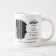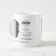 Large coffee mug featuring a satirical design about the shaky state of American democracy and politics. The properties of the design components (i.e., flag, Trump's head outline, lines and text) can be customized. To do this, follow the steps below: