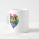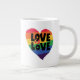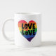 Esta trabalho de arte apresenta a frase "Amor é Amor" desenhada dentro de um coraçao arco-íris colorido.
