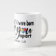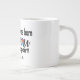 Jumbo Alguns dias, uma xícara de joe de tamanho normal simplesmente não vai funcionar. Quando precisar de uma dose extra de cafeína, pegue a sua caneca de café extragrande de Zazzle. Vai acomodar um cheio de 20 onças de Venti. Perfeito para sopa, cereal, sorvete ou chili também! Esta caneca gigante apresenta uma alça em forma de C para um corte confortável. Dimensões: Altura: 4,5" Diâmetro: 3,9" Capacidade: 20 onças de micro-ondas e lava-louças Forte, de cerâmica Cumpre ou excede os requisitos do FDA para a segurança das comidas e bebidas Impressos a pedido em Reno, NV Designer Dica: Para garantir o impressão de mais alta qualidade, note que a área de design personalizável deste produto mede 4" alto x 10,5".