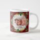 "Avós 1rua Foto de Natal Holly Pine Cones Gigante Coffee Mug." Precioso guardando presente para os novos avós tesourarem para sempre. Apresenta uma foto do seu precioso novo e sua mensagem personalizada e o nome do bebê. Toda arte foi pintada em aquarela por uma artista e designer internacionalmente licenciada, Audrey Jeanne Roberts, autora.