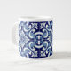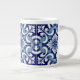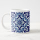 Este produto tem um design intricado com fundo azul escuro e padrões ornamentais brancos. O design lembra os estilos tradicionais de cerâmica ou porcelana, que podem interessar a quem aprecia a estética clássica ou vintage.