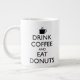 Mug com um design baseado no poster moral britânico "Keep Calm and Carry On" de 1939 — uma xícara de café com "DRINK COFFEE AND EAT ROSQUINHAS".