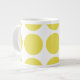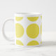 Bonita e moderna Grande Bolinhas Jumbo Mug. Este design apresenta bolinhas circulares grandes de tamanho excessivo em amarelo e branco. O texto pode ser adicionado a esta design para lhe dar um toque pessoal.