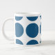 Bonita e moderna Grande Bolinhas Jumbo Mug. Este design apresenta bolinhas circulares grandes de tamanho excessivo em azul e branco. O texto pode ser adicionado a esta design para lhe dar um toque pessoal.