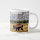 Esta foto mostra uma solitária caça selvagem em frente à cordilheira de Teton em Jackson Hole, Wyoming.