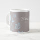 Borboleta doce e delicada, "Floral Jumbo Mug", com uma cinza empoeirada, e borboletas azuis-claras, bem como ornamentos florais. Esta elegante caneca floral é perfeita para o bebendo da sua bebida quente favorita com um toque de esférula. Fácil de personalizar, basta adicionar o texto personalizado de sua escolha nos campos de texto fornecidos. Clique no botão "Personalizar a TI" para encontrar opções adicionais de personalização.