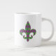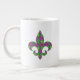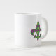 Um padrão harlequin de verde e roxo se transforma em um argilo lúdico com uma camada de contornos de diamante de ouro e flur de lis, criando um padrão divertido e colorido perfeito para qualquer nova orleans influenciou a celebração do Mardi Gras. O padrão é mascarado atrás da silhueta de uma flor de lis para adicionar uma nota final divertida. Esta caneca está disponível em jumbo, espresso e tamanhos e estilos de porcelana óssea.