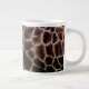 O padrão de impressão animal de ZoeSPEAK nesta caneca gigante foi feito a partir da fotografia original de Zoe de uma girafa. O padrão é feito em tons de marrom. Há um texto que diz FAMILY ZOO. Este é definido para personalizar, usar como está ou excluir se preferir.