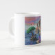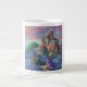 Se você ama as sereias, então esta pintura é para você. O Castelo de Sereia pintado por Traci Van Wagoner apresenta uma sereia com cabelo roxo na frente e uma sereia com cabelo verde se soltando em ilhas rock enquanto outra sereia com natações de cabelo cor-de-rosa no oceano diante de um castelo com um céu roxo, laranja e amarelo por trás. Esta bela e caprichosa arte da fantasia faz um presente de excelente e uma decoração espantosa para o seu escritório ou casa.
