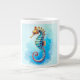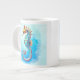 Mug gigante em um design de aquarela de um cavalo de mar colorido e esquisito com tons de bronzeado, turquesa e tons de aqua. A cauda enrolada e textura espessa lhe dão personalidade, e o fundo macio turquesa adiciona um sonho subaquático.