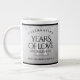 Celebre o aniversário de casamento do 11 de aço com um casal dessas canecas gigantes de café na moda! A inscrição elegante num fundo de aço vestido e revestido de diamante acrescenta um toque memorável para esta ocasião especial e para esta etapa. Personalizar com os nomes dos casais, datas do casamento e/ou mensagens de parabéns. O reverso mostra design idêntico. Design © W.H. Sim, Todos os Direitos Reservados. Mais informações em zazzle.com/expressionsoccasions