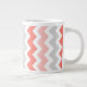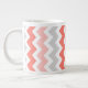 O cor-de-rosa cor de pêssego, elegante e moderno, as cinzas e os chevrons brancos zigzags padrão de listras de vintage, uma caneca de café jumbo, totalmente personalizável com seu texto ou foto, crie uma caneca de café verdadeiramente única para sua próxima festa de café.