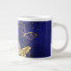 Composição de borboletas luxuosas de safira e joias de ouro em fundo azul texturizado.