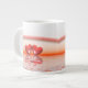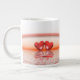 Uma linda caneca de café com dois corais flutuando na água sob um arco-íris. O texto personalizável diz "35 anos".