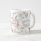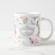 Uma coroa tradicional americana pageant, semelhante à hobnail, agarra os lados desta caneca jumbo é mostrada num bonito impressão floral rosa, SEM texto. Compre ou personalize esta caneca. Imagem do stock freepik.com