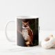 Esta pintura é um de meus favoritos. Nós ouvimos corujas frequentemente na noite, e vemos às vezes realmente um no pólo de telefone perto de nossa casa. A coruja é sabida para a sabedoria, e está caçando a capacidade. É um pássaro magnífico. Eu espero que você aprecia esta caneca para os próximos anos. Oh sim, é cofre forte da máquina de lavar louça.