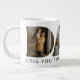 DAD 20 oz. jumbo mug personalized with 3 of your favorite photos which are displayed in the shape of the word DAD with the words "Love you forever and always!" Perfect for your dad!