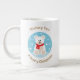 Esta grande caneca de café apresenta um design de Natal com um urso em círculo ou bolha e texto curvado "Desejar um Natal Bear". O texto pode ser personalizado, incluindo a cor.