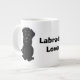 Desenho de cão Mug Labrador. Você pode personalizar esta caneca com qualquer texto de sua escolha. Se precisar de ajuda para personalizar, entre em contato conosco através do link desta página. Cãozinho preto Labrador design personalizado