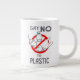 Este trabalho de arte apresenta a frase Diga não ao plástico.