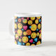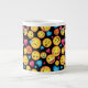 Esta caneca emoji branca é um presente excelente para qualquer um e qualquer idade. Os esojos divertidos são coloridos e pop num fundo preto. ©Fiona Stokes Gilbert Todos Os Direitos Reservados