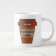 Esta caneca de café exibe uma xícara de café marrom com o texto "enfermeira - movida a café." Há uma cruz vermelha ao lado de "enfermeira".