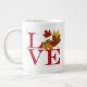 Quem não ama o outono e as lindas cores da queda que mudam as folhas fornecem? Texto empilhado LOVE com o "O" substituído por uma coleção colorida de folhas de mapeamentos de outono em vermelho, amarelo e laranja.