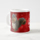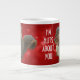 Eu sou Loucos sobre você mostra minha fotografia original de um jovem esquilo. O jovem sujeito sentou-se nesta pose segundos antes de eu tirar a fotografia. O fundo vermelho tem um sutil padrão cardíaco vermelho. A imagem e o texto do esquilo estão na frente e atrás da caneca.