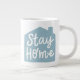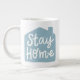 Este design apresenta uma frase em relação a ficar em casa, em segurança.