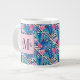 Caneca De Café Grande Flamingo & Palms sobre padrão geométrico