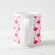 Café jumbo e canecas cor-de-rosa, incluindo um flamingo fofo, com um padrão cor-de-rosa e branco. Beba seu café, chá ou bebida favoritos em estilo com cor de fundo e um toque de natureza tropical.
