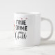 Jumbo Alguns dias, uma xícara de joe de tamanho normal simplesmente não vai funcionar. Quando precisar de uma dose extra de cafeína, pegue a sua caneca de café extragrande de Zazzle. Vai acomodar um cheio de 20 onças de Venti. Perfeito para sopa, cereal, sorvete ou chili também! Esta caneca gigante apresenta uma alça em forma de C para um corte confortável. Dimensões: Altura: 4,5" Diâmetro: 3,9" Capacidade: 20 onças de micro-ondas e lava-louças Forte, de cerâmica Cumprir ou exceder os requisitos do FDA para o Designer de Segurança de comidas e bebidas Dica: Para garantir o impressão de alta qualidade, note que a área de design personalizável deste produto mede 4" alto x 10,5" de largura