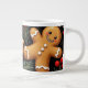 "This heartwarming design features two cheerful gingerbread figures holding hands, decorated with bright white icing and button details. They are nestled in a beautiful arrangement of dark pine boughs, vibrant red berries, and assorted star and snowflake cookies, all set against a rich, dark background for high contrast. This cozy and traditional graphic is ideal for Christmas pajamas or socks, kitchen towels and oven mitts, holiday cards and stationery, cushions, or any product intended to evoke the warmth and togetherness of holiday baking and cheer."