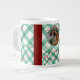 Caneca de natal de gingham verde personalizada. Comece seu dia com um sorriso com esta charmosa caneca de Natal de gingham verde personalizada. Esta caneca festiva e inspirada na safra é uma maneira maravilhosa de mostrar a alegria da sua família com uma foto carinhosa, fazer café ou cacau quebram um momento para se lembrar. O padrão clássico de tabuleiro de xadrez proporciona um sentimento rústico e aconchegante, transformando esta caneca numa única e sentida marca de férias. Não é apenas uma caneca — é um belo pedaço de decor pessoal do Zazzle e um presente perfeito para qualquer pessoa na sua lista.