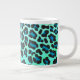 Caneca De Café Grande Impressão de Leopardo Negro e Teal