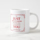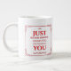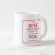 Alguns dias, uma xícara de joe do tamanho normal simplesmente não vai funcionar. Quando precisar de uma dose extra de cafeína, pegue a sua caneca de café extragrande do Zazzle. Vai acomodar um cheio de 20 onças de Venti. Perfeito para sopa, cereal, sorvete ou chili também! Esta caneca gigante apresenta uma alça em forma de C para um corte confortável. Dimensões: Altura: 4,5" Diâmetro: 3,9" Capacidade: 20 onças de micro-ondas e de lava-louças em segurança Forte, de cerâmica Cumprir ou exceder os requisitos do FDA em matéria de segurança das comidas e bebidas